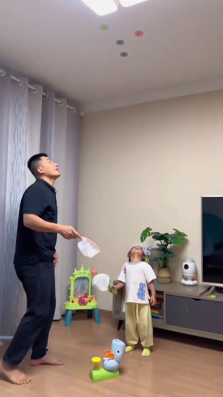 Includes a set of lightweight, brightly colored discs that spin and fly unpredictably, encouraging kids to move, chase, and catch. Made of safe, durable plastic, they’re designed to be gentle and fun for indoor use. -