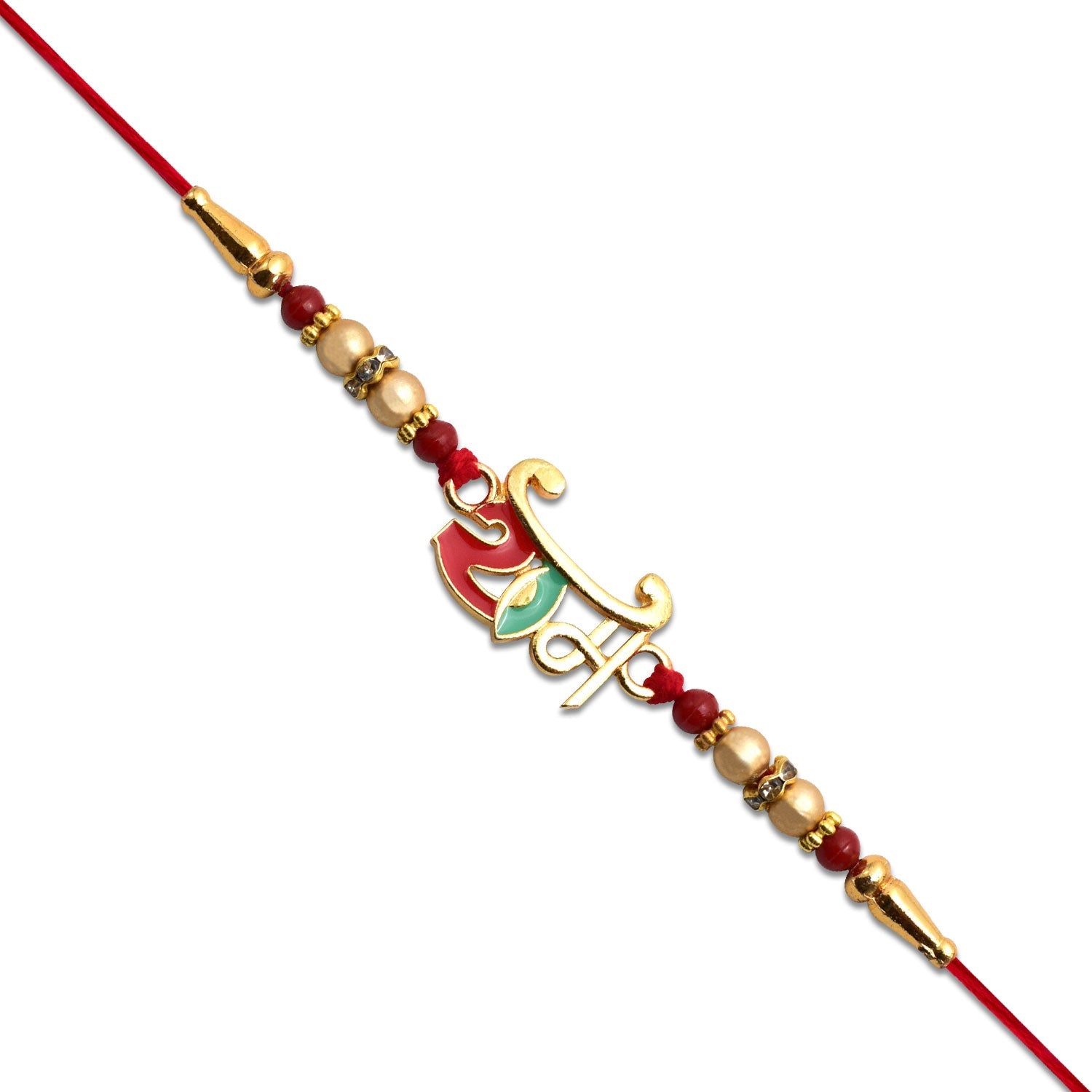 Stylish Ram Name Rakhi with Enamel Leaf Accent