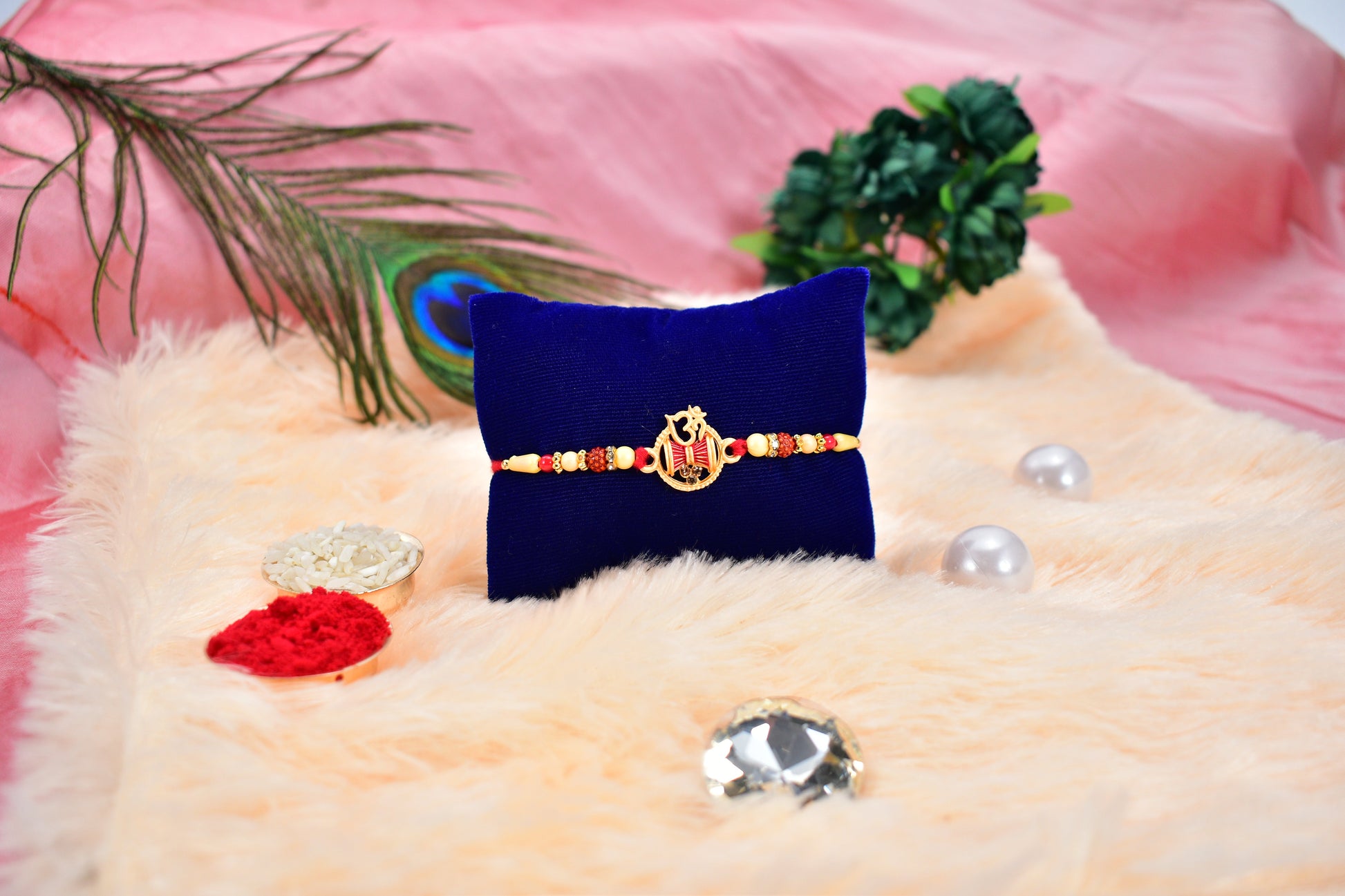 Honor the timeless bond between siblings with our intricately designed Rakhi. Crafted with care and elegance, this Rakhi blends traditional charm with modern aesthetics. Whether you're near or far, send your love and blessings with this exquisite thread of affection.