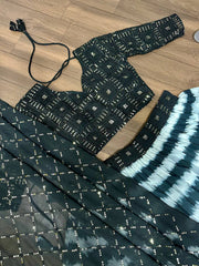 Exclusive Black & White Georgette Lehenga Set With Sequin Embellishments