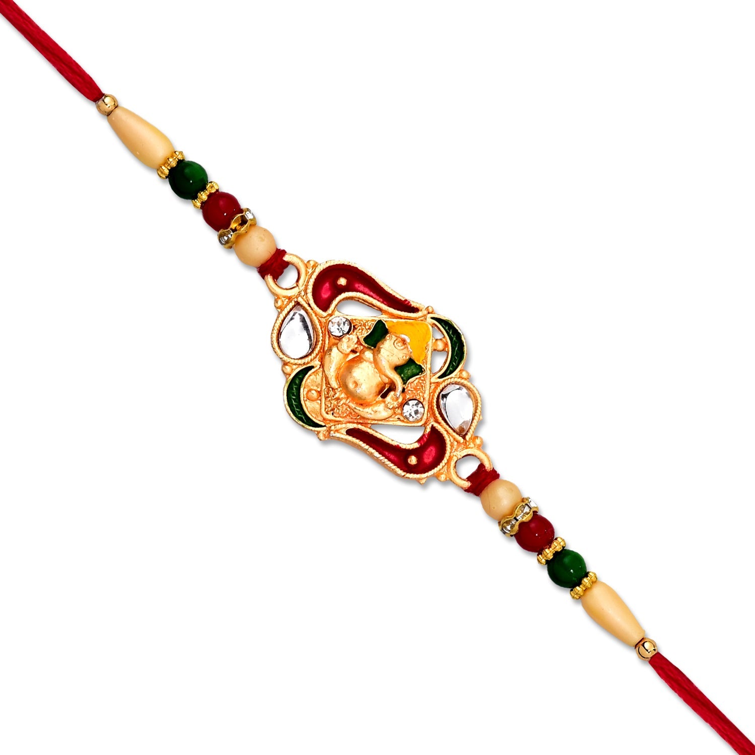 Honor the timeless bond between siblings with our intricately designed Rakhi. Crafted with care and elegance, this Rakhi blends traditional charm with modern aesthetics. Whether you're near or far, send your love and blessings with this exquisite thread of affection.