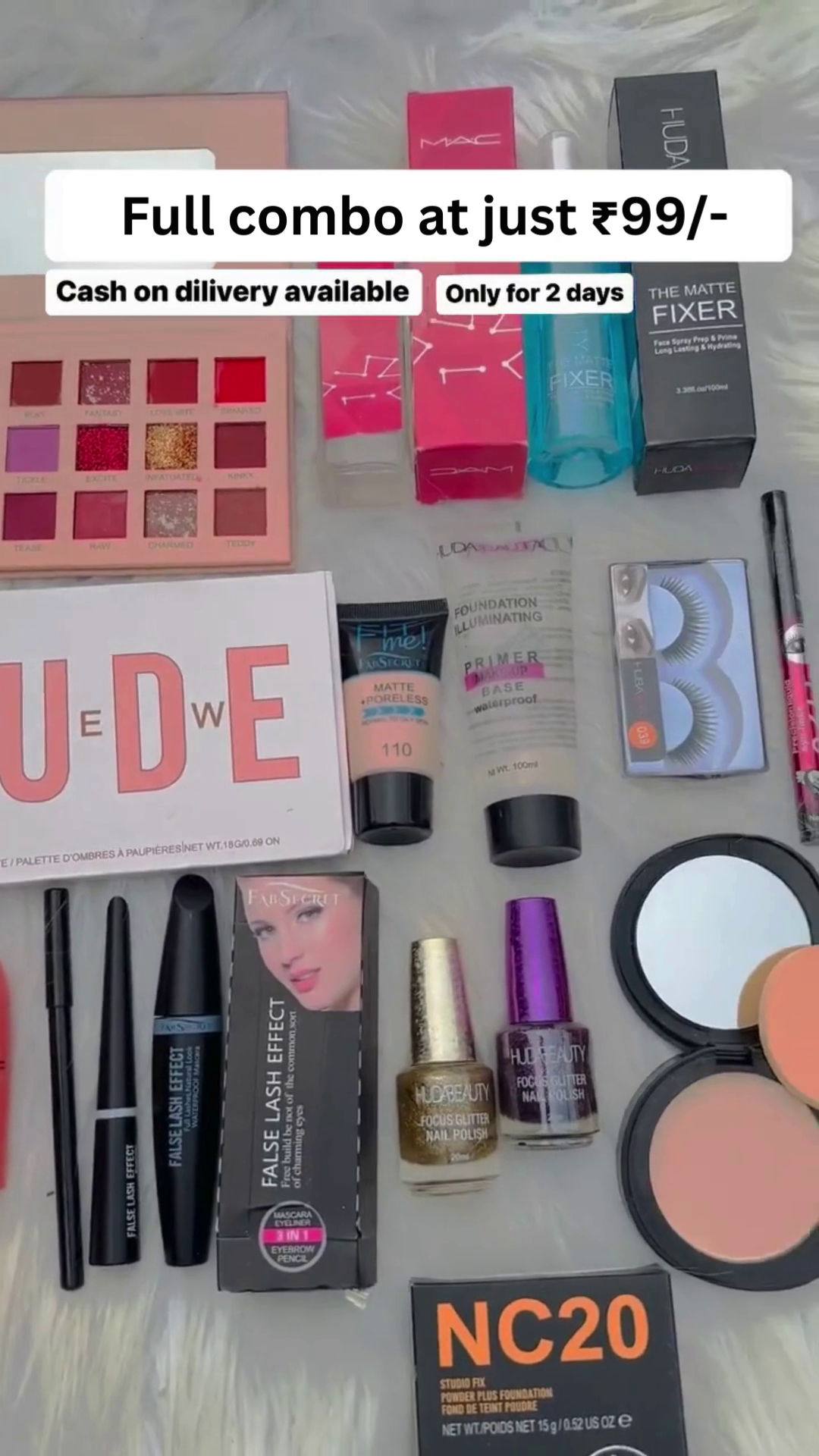 Get everything you need for a flawless, head-to-toe makeover in one premium package. The Ultimate 25-Piece Full Makeup Combo Kit is your all-in-one solution for creating stunning looks, from natural daytime elegance to bold evening glam. Perfect for makeup beginners and seasoned beauty pros alike.