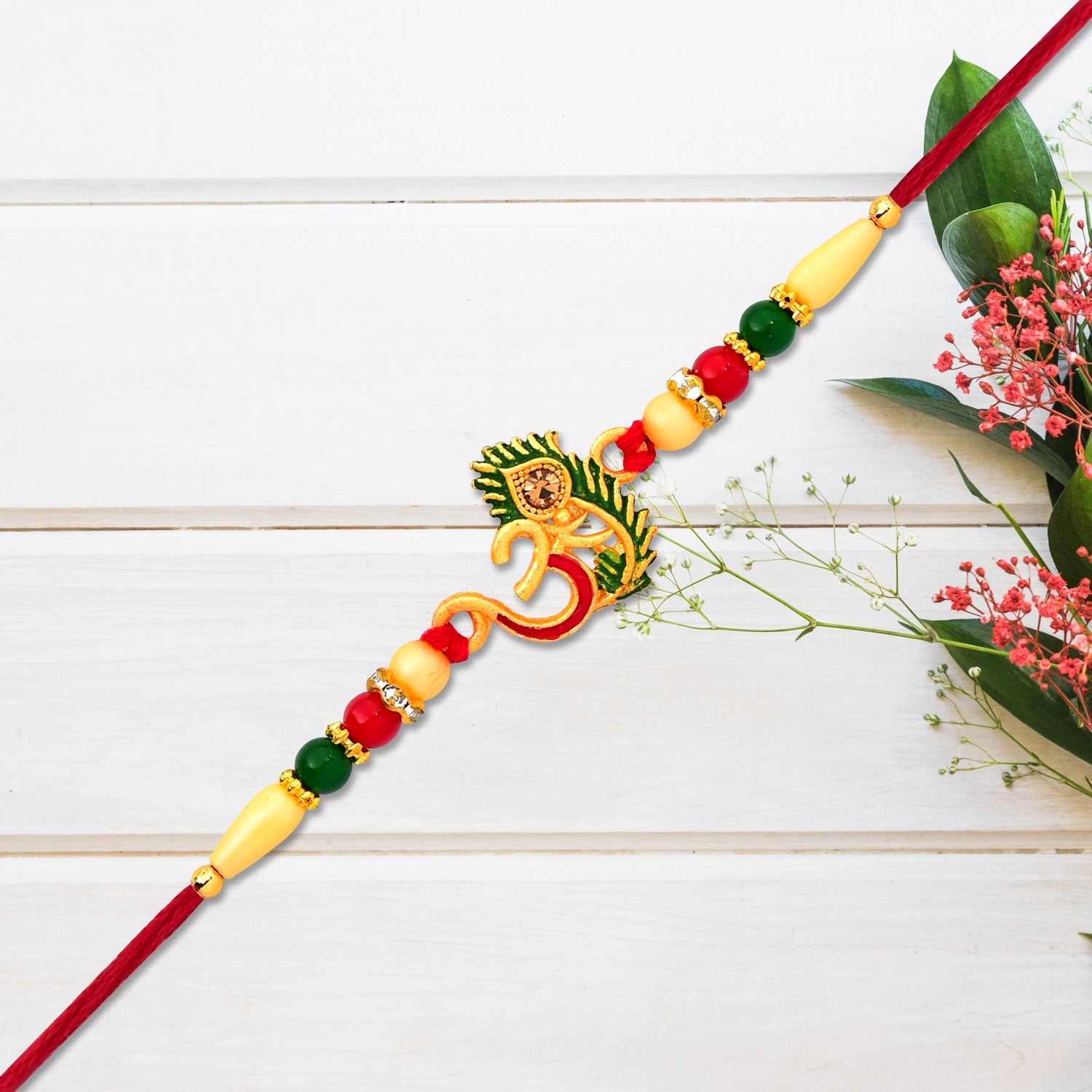 Honor the timeless bond between siblings with our intricately designed Rakhi. Crafted with care and elegance, this Rakhi blends traditional charm with modern aesthetics. Whether you're near or far, send your love and blessings with this exquisite thread of affection.
