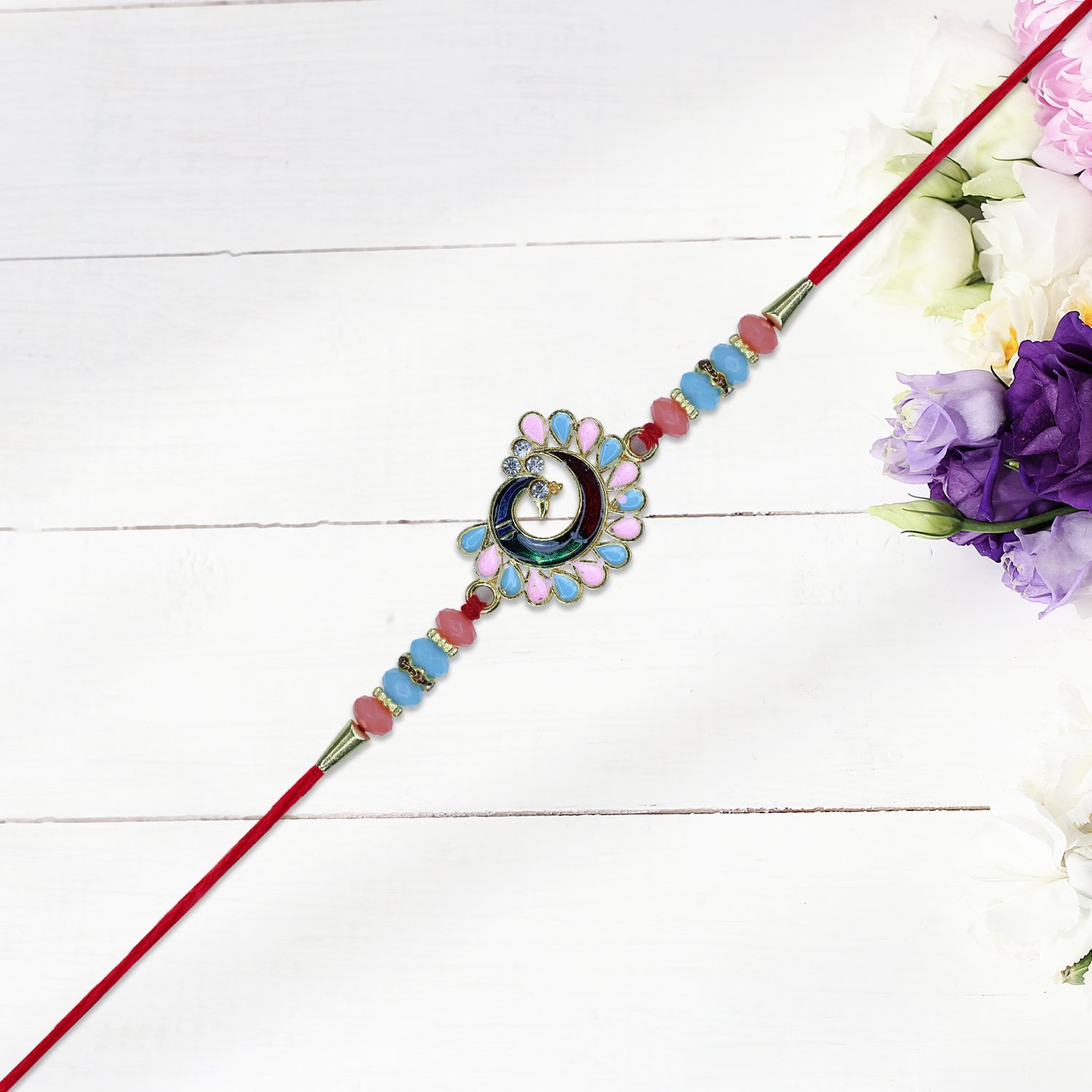 Honor the timeless bond between siblings with our intricately designed Rakhi. Crafted with care and elegance, this Rakhi blends traditional charm with modern aesthetics. Whether you're near or far, send your love and blessings with this exquisite thread of affection.