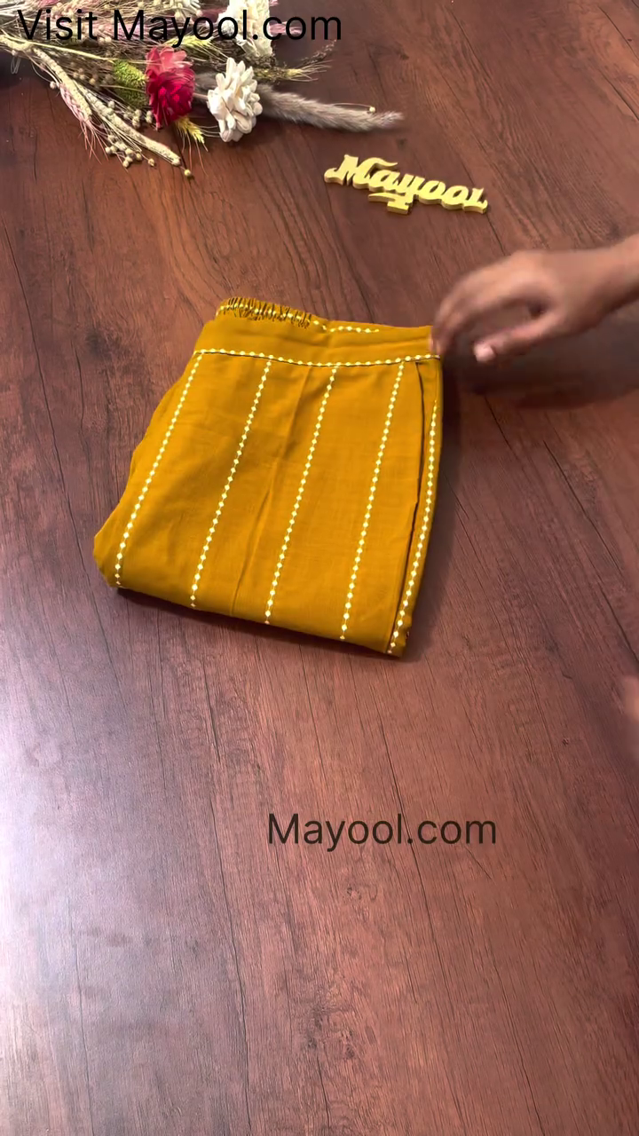 Mustard yellow embroidered cotton kurta pant set for a vibrant festive look